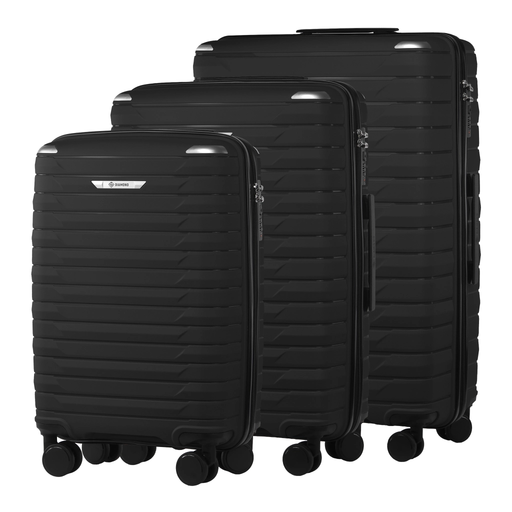 Alle Koffer im Set sind aus hochwertigem Polypropylen (PP) gefertigt – einem Material, das in der Gepäckbranche für seine hohe Widerstandsfähigkeit gegen Stöße, Druck und Risse geschätzt wird. Die elastische Struktur schützt den Inhalt zuverlässig und ermöglicht gleichzeitig ein geringes Eigengewicht, was besonders bei Gepäcklimits von Vorteil ist.
